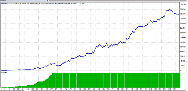 Depósito inicial 10000.00 Beneficio neto total 2856156.02 Beneficio bruto 11927132.50 Pérdida bruta -9070976.48 Factor de beneficio 1.31 Rentabilidad esperada 2416.38 Disminución absoluta 350.71 Disminución maximal 332580.00 (10.71%) Disminución relativa 52.71% (228810.00) Total de operaciones 1182 Posiciones cortas (ganado %) 551 (51.18%) Posiciones largas (ganado %) 631 (53.72%) Operaciones de beneficios (% del total) 621 (52.54%) Operaciones de pérdidas (% del total) 561 (47.46%) Mayor Operaciones de beneficios 37780.00 Operaciones de pérdidas -20240.00 Media Operaciones de beneficios 19206.33 Operaciones de pérdidas -16169.30 Máximo ganancias consecutivas (beneficios en dinero) 9 (254940.00) pérdidas consecutivas (pérdidas en dinero) 11 (-219940.00) Máximo beneficios consecutivos (número de ganancias) 254940.00 (9) pérdidas consecutivas (número de pérdidas) -219940.00 (11) Media ganancias consecutivas 2 pérdidas consecutivas 2 Se nota que al igual con el real, no fue rentable para el 2013, tal vez curve "fifthing" ? (o como se escriba xD) PD: dani creo que debes crear un nuevo hilo, o en sudefecto wizard debe mover estos mensajes a otro hilo ya que "ensuciaríamos" el actual