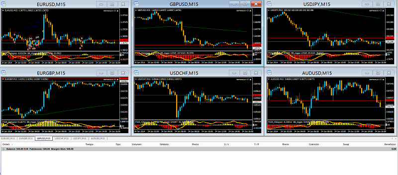 Las entradas no se basarán en ningún indicador ni soportes ni resistencias ni nada parecido, únicamente se tendrá en cuenta lo que hace el mercado en un periodo anterior, tampoco hace falta que haya realizado un rompimiento ni nada, solo como se ha movido el precio. Con este sistema intentaremos darle una oportunidad a las matemáticas en su parte de la estadística. Trabajaré con 6 pares de divisas, y se realizaran 36 entradas por la mañana y 18 por la tarde. En caso de que una operación no haya resultado perdedora y este viva no se realizará entrada nueva, se mantendrá la anterior. El margen de sl que se utilizará será de 20 pip. Como ya he indicado que la oportunidad se la daremos a la estadística, la permitiremos a ésta 4 fallos consecutivos, doblando las posiciones en relación 2/3 (como si buscásemos sl/tp 20/30), tras lo cual volveremos al principio de operaciones. Para probar he creado una cuenta de 500 euros, veremos como funciona.... Espero poder ir aclarando algo mas del tema según vaya avanzando Inentaré hacerlo mas ameno colgando pantallazos Un saludo a todos y espero que podamos sacar algo interesante de esta prueba.