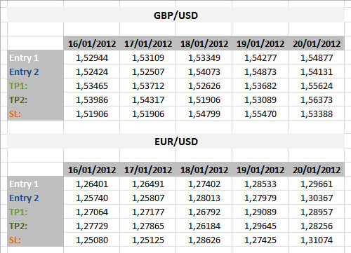 por ejemplo: Hoy la entrada 1 la dío en 1.29658 y el TP1 1.28956 (osea venta). Aún no me cuadra mucho el SL que lo veo mi riesgoso La entrada 2 la dió en 1.30362, con lo que entiendo que es una entrada reserva ya que si entramos en la primera la segúnda queda lejos y en contra......no sé si me explico Alguien tiene algún pequeño manual (o pequeña explicación) para saber si me dejo algo y hacer mejor el seguimiento??? Mis datos de hoy son: Ent1: 1.29658 Ent2: 1.30362 TP1: 1.28956 TP2: 1.28256 SL: 1.31068 Abrí ordén a la venta a las 00:00 (de hoy) y ya llegó al TP1 perfectamente El SL lo pusé por detrás de la ent2 (entiendo que es una resistencia) y no dejé el SL que marca (me parece excesivo para el control de riesgo) Esta bien este recurso???... PD: Me ayudo con algún otro indicador como el ADX para garantizar tendencia