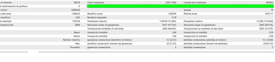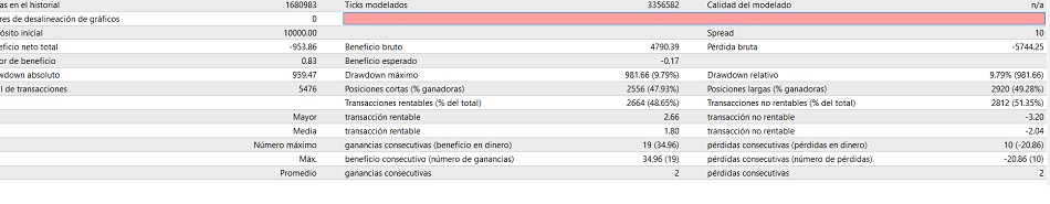 Aunque no me gusta poner datos de mis cuentas reales, pero como muestras tu prueba debo de mostrar reciprocidad. Ojo la optimizacion fue hecha a apertura de velas al minuto y tiene su sentido estadistico.