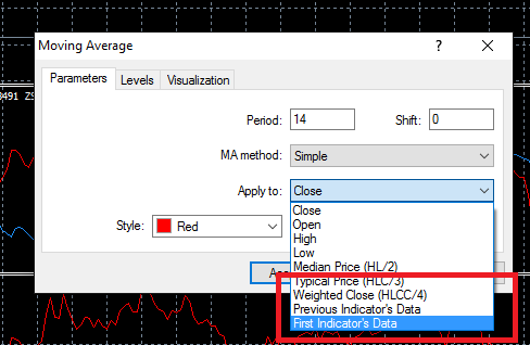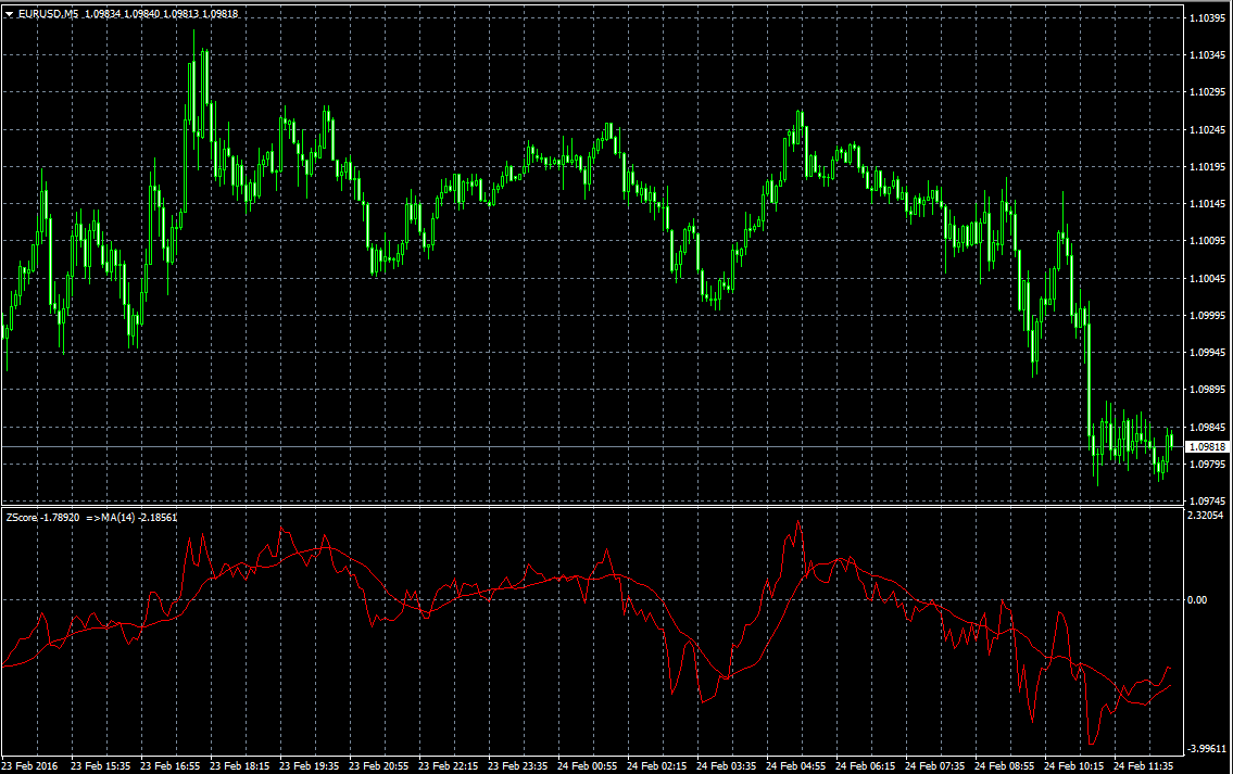 Re: Un indicador que funcione sobre otroHola Centinel, disculpa la tardanza, se me pasó tu post. Sobre lo que comentas, lo que te sale en pantalla es correcto: tienes que pensar que el ZScore se calcula sobre el símbolo que tienes en pantalla (en tu ejemplo, el EURUSD) y no sobre el Pairs with Beta. Los Overlays de indicadores solo se pueden hacer con algunos de los que vienen de serie en Metatrader (Moving Average, Bollinger Bands, etc.) porque tienen activada una opción de calcular sobre el indicador que tengamos en pantalla. En los siguientes pantallazos puedes ver cómo le pongo una media móvil al ZScore por ejemplo:
