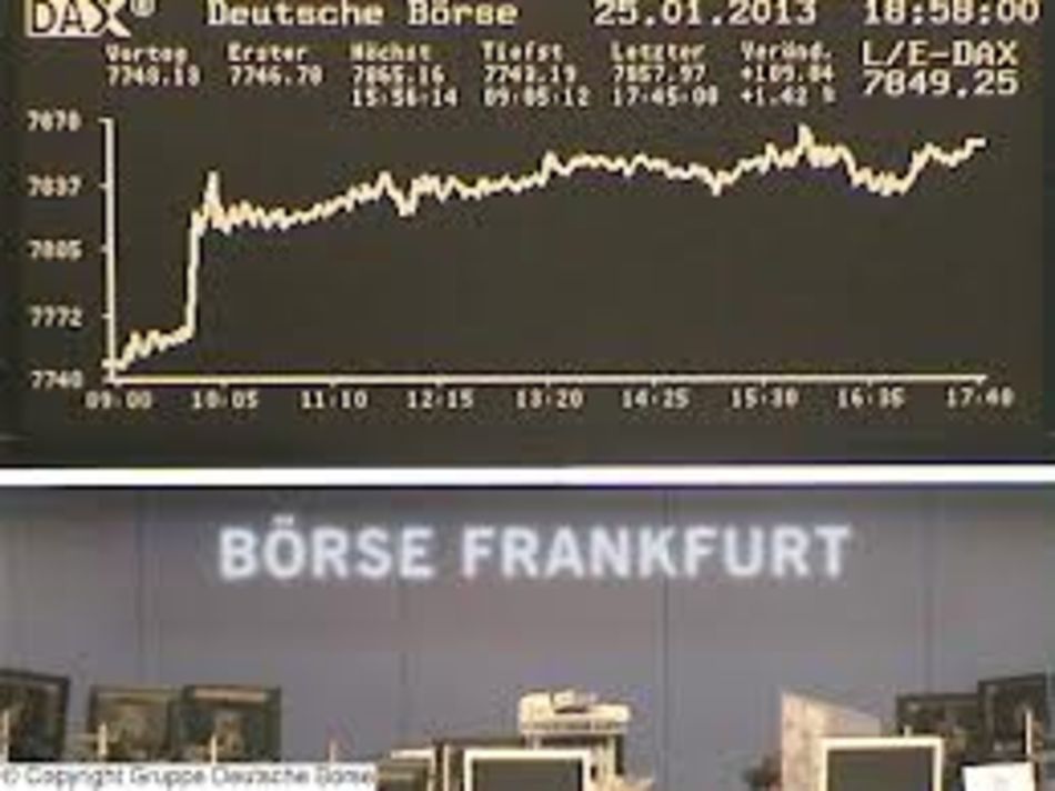 El DAX 30 de la Bolsa de Fráncfort subió hoy de nuevo impulsado por la tendencia alcista del Dow Jones de Industriales de Wall Street, que se mantenía en valores récord históricos. El DAX 30 ganó un 0,62 %, hasta 7.919,33 puntos, el nivel más alto desde enero de 2008, en una jornada con un nivel de contratación de 3.240 millones de euros. Las bolsas asiáticas también presentaron una notable tendencia alcista y el Nikkei 225 de Tokio cerró en el máximo desde septiembre de 2008. La liquidez que los bancos centrales han inyectado en los mercados internacionales es la razón de esta subida generalizada de la renta variable, según un operador de Broker IG. La crisis de endeudamiento de la zona del euro, el resultado electoral en Italia y el ahorro en EEUU ya no preocupan a los inversores. El productor de bienes de consumo Henkel subió un 2,4 %, hasta 70,33 euros, después de dar a conocer resultados récord en 2012. El fabricante de productos químicos especializados Lanxess ganó un 2,5 %, hasta 66,89 euros, por comentarios positivos de analistas. El grupo de suministro energético RWE perdió un 1,9 %, hasta 28,45 euros, por un estudio cauteloso. CON UNA TORTURA ADECUADA LOS GRÁFICOS CONFIESAN TODO LO QUE QUIERAS.