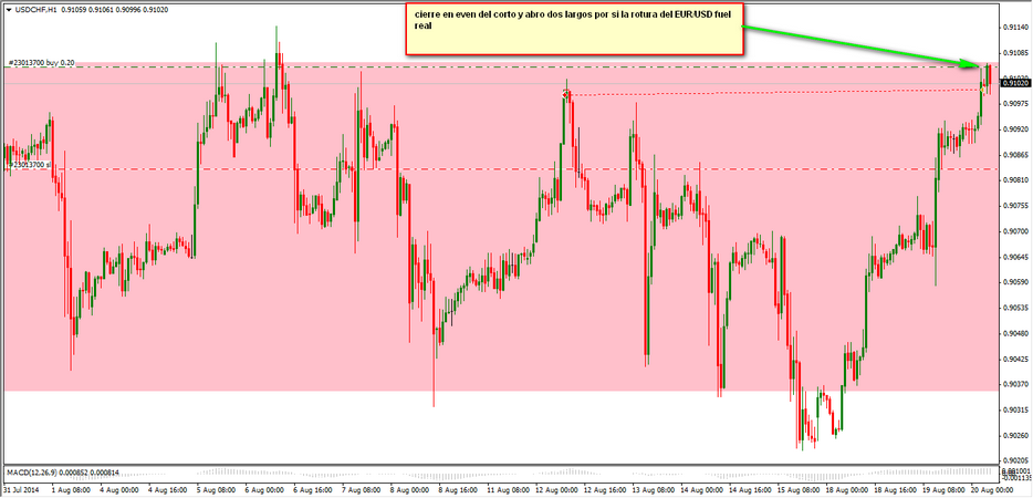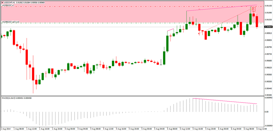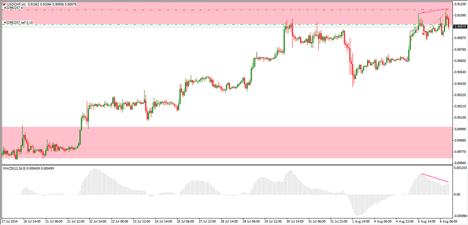 Hace un mes abrí unos largos en el USDCHF de los cuales cerré uno y dejé correr un par de ellos, este trade fue publicado en el hilo de "Algúntradeparacompartir". Ya puestos, en vez de cerrar los largos abiertos que quedan ,voy a intentar seguir abriendo posiciones largas cuando se presente la oportunidad con vista a cerrarlos dentro de un año o más. Por lo tanto he abierto un hilo separado sólo para ello y por supuesto están todos invitados. Es posible que de vez en cuando abra algún corto para aprovechar también las bajadas. Hace un momento acabo de abrir un corto por cierto, no he buscado nigún patrón en concreto sino un area de resistencia con divergencia. Siempre con stops muy ajustados. vamos allá saludos