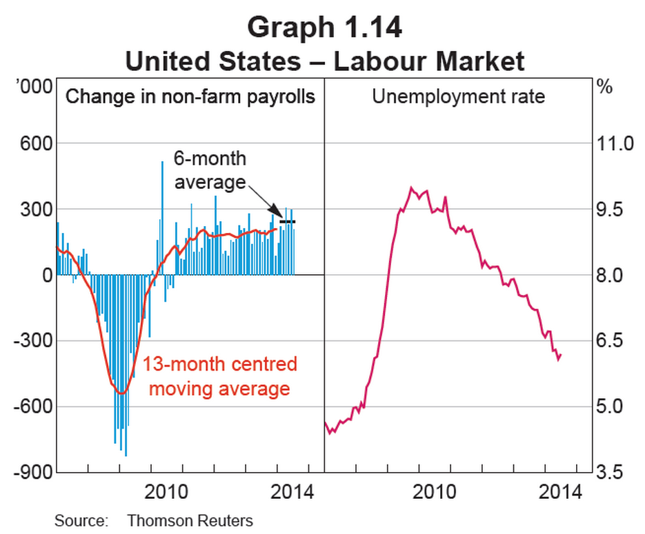 buenas tardes , Muchas gracias Crlos9. La verdad es que no tengo ninguna previsión, el USD parece que está despertando aunque siguen saliendo noticias contradictorias como las venta minoristas de hoy. Sin embargo fijate en el empleo USA( foto del último statement del RBA), muy claro un cambio de ciclo. Tarde o temprano se notará, espero. Así que de momento estamos metidos en un lateral de consolidación con bandazos arriba y abajo. En fin es lo que hay mientras se decide la dirección. Mantengo el corto al que pondré el stop en even y los largos. Ahora a toro pasado pienso que quizás hubiera sido buena idea hacer beneficio con los cortos. Casi 60 puntos en tres ocasiones. El par en cuestión lleva más de 20 años bajando. Está muy interesante a l/p, una enorme cuña. Os dejo el gráfico en mensual . Para mi es impresionante. saludos