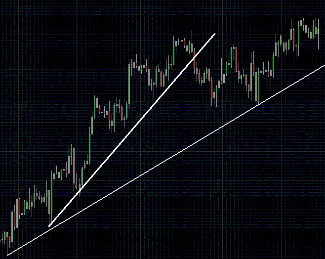 Pero esa linea de tendencia interna la tenía dibujada. Después de que el mercado tocara de nuevo la linea de tencendia externa, el mercado volvió a acelerarse. La pregunta es, es posibla ya identificar una nueva linea de tendencia interna? Existe algun sistema para identificarlas correctamente? Un saludo!