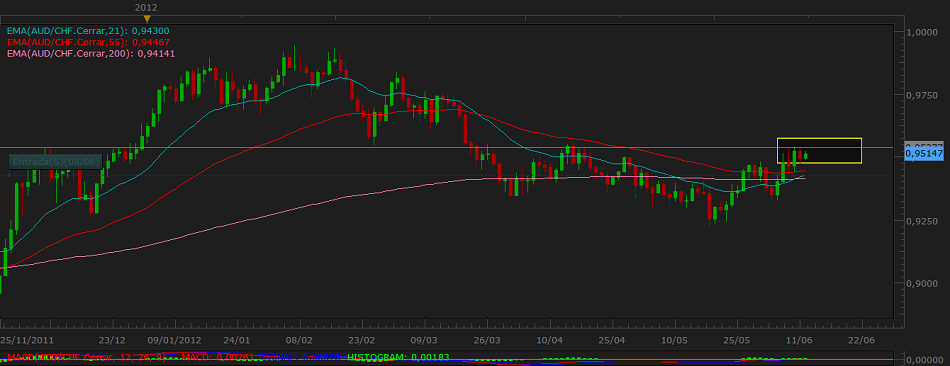Re: "mis" señales para la semana que entraActulizacion AUDCHF, espero un fuerte movimiento si rompe al alza,vigilo tambien alguna vela bajista,esta super interesante este par,a ver por donde rompe.
