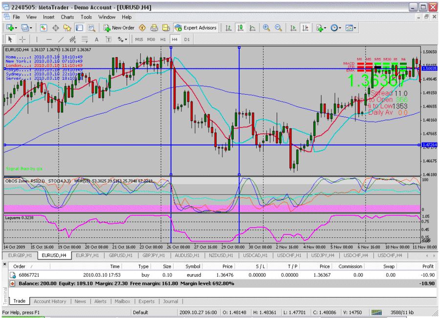 Re: Mobile trends --Estrategia de largo plazo libre de estrés.Worldteam o alguien del foro, a ver si me pueden aclarar algo, en la pagina 5 del manual hay una operacion remarcada en la que se gano 282 pips en el par eurusd, esta operacion se abrio el dia 23 de octubre de 2009 y se cerro 6 dias despues, o sea el dia 29, era una operacion de venta, aqui pongo la imagen de ese dia con las lineas en la entrada y salida segun lo pone en el manual, lo que queria preguntar es porque saliste en ese punto concreto si los indicadores en ese punto no daban ninguna señal de que el mercado pudiese rebotar hacia arriba, gracias.