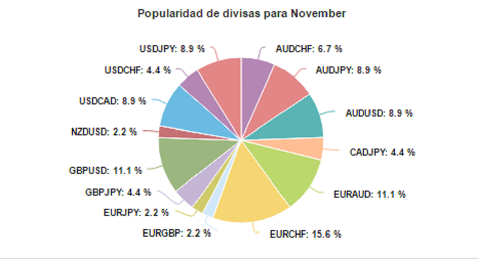 También es muy importante la correlación entre los distintos pares, por ejemplo si compramos USD/JPY con 1% del capital de la cuenta no invirtáis otro 1% del capital en AUD/JPY ya que muy probablemente dará el mismo resultado que el par USD/JPY debido a que la correlación entre los 2 pares es muy fuerte y perderíamos un 2% del capital. Un saludo! Adjunto gráfico diversificación Noviembre.