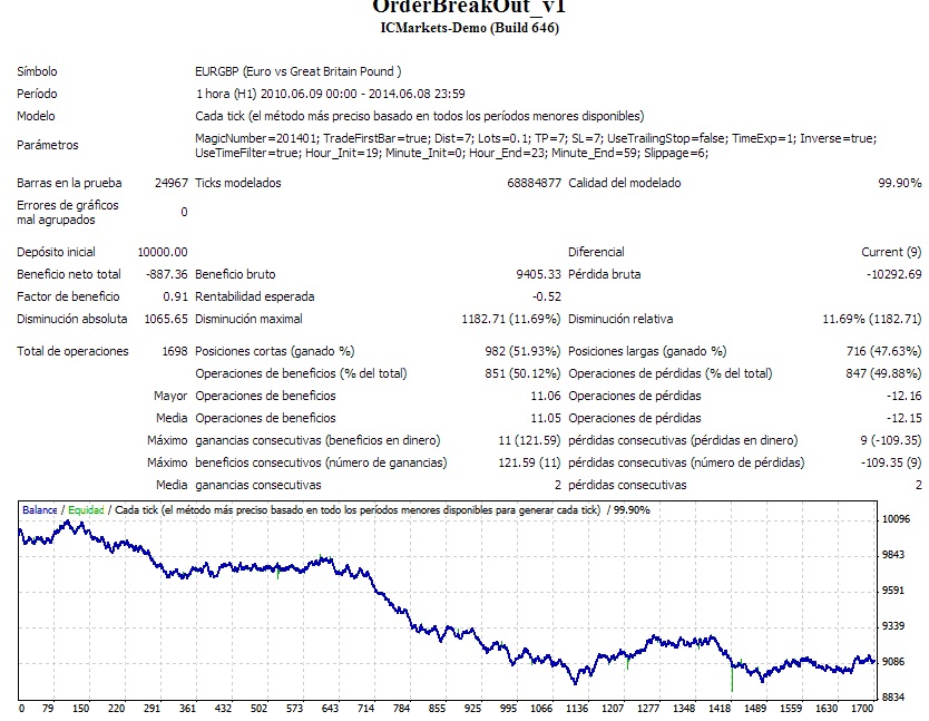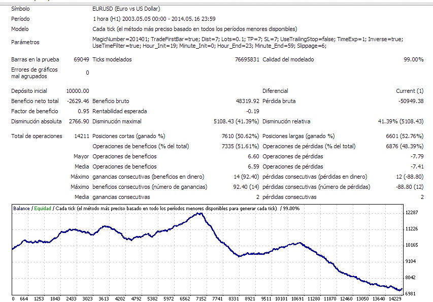 Re: Mi nuevo robotBueno a mi el EURUSD con esos mismos parametros (no entiendo muy bien porque ese horario, pero bueno me imagino que por la volatilidad baja de esas horas) me dio esto: