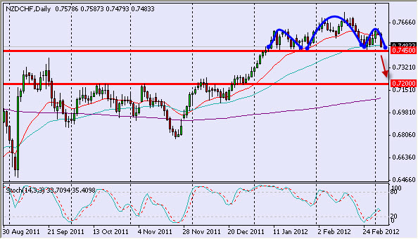 Re: NZD/CHFEl debilitamiento del NZD frente al dólar fue más intenso que el debilitamiento del USD/CHF y por lo tanto, el par NZD/CHF parece más bajista. Se estimó que el apoyo en 0.745 parecía ser lo suficientemente fuerte como para otra sesión alcista, pero la pareja ha creado el patrón "Head & Shoulders" por encima de este modelo y parece estar listo para una escapada hacia abajo, que si se produce, puede tomar el par hasta 0,72. Sin embargo, hay que tener en cuenta que la tendencia general sigue siendo alcista y el par podría hacer una falsa ruptura y voltear inmediatamente después hacia arriba.