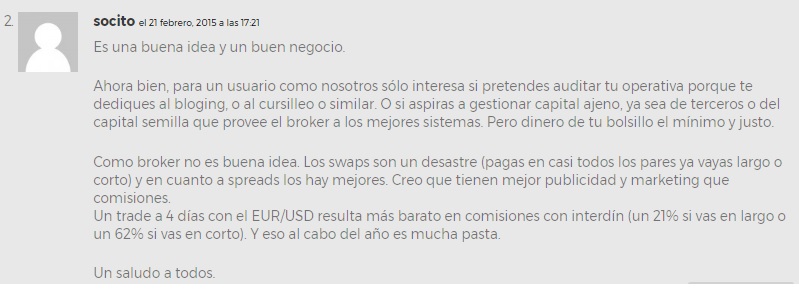 No soy empleado de nadie. Llevo años posteando, y procuro argumentar lo que digo. Aquí ya te contestó uno de la casa. Hasta que vio que venías a trollear. Imagino que el tipo no está para perder el tiempo con gente como tú y te dejó desfasar. Todos sabemos googlear y realizar búsquedas. Interdin era buen broker para forex. Hasta que el banco depositario cascó. Pero como estaba regulado, los clientes recuperaron su pasta. Ahora están los de ibroker que parecen haber cogido el testigo. IB es el mejor broker retail Oanda no es mal broker sobre todo si estás empezando Y Darwinex pues muy buen broker para forex. Importan las opiniones y los argumentos Me podía haber dado de alta con otro nick, pero eso es intranscendente para el tema que estamos tratando. Y si pierdo el tiempo en este hilo es porque tengo unos dias ocioso y me fastidia la gente que como tú, miente inventa y tergiversa. Intervenciones como las tuyas destrozan los foros. En este hilo lo has hecho polvo