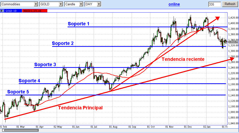 Aca les envio un análisis de los movimientos mas recientes Hace unas semanas hice un análisis acerca de la posible dirección de la plata. Este fue el gráfico que publiqué en aquella entrada: Grafico 1 http://2.bp.blogspot.com/_IGPdsmvHlsw/T ... /Plata.jpg El soporte 2 (26.50 $) toco efectivamente tal como lo prevei un poco. También comenté que este soporte no seria roto inmediatamente (ya que esa es la función de soportes/resistencias: de actuar como muros contenedores). El siguiente gráfico representa lo que paso con el metal desde esa entrada: Gráfico 2 http://4.bp.blogspot.com/_IGPdsmvHlsw/T ... lata+2.jpg Como vemos, luego de la señal de venta (circulo en rojo en el gráfico 1) y el quiebre del soporte 1, vimos como el precio del metal ‘beso’ ligeramente el soporte 2 de 26,50 $ (ver cuadrado rojo en gráfico 2). El soporte 2 no fue roto, sino que actuó como buena resistencia . Actualmente el precio ha vuelto a subir por encima del soporte 1. Sin embargo, el la plata todavía no ha cruzado la línea de moving average (MA) de los 50 días. Dentro de mi experiencia con metales, esta línea tiende a actuar bien como suporte y resistencia. Uno de los motivos por el cual el precio TODAVIA no ha roto el soporte 2 (y ha vuelto por encima del soporte 1), es que bajo las circunstancias actuales de inseguridad (léase: revueltas en Egipto, donde Jordania pareciera ir a seguir una suerte parecida, y precios de petróleo por encima de los $100) la plata viene a ser una especie de refugio en el cual uno puede guardar resguardo, desde un punto de vista de inversión Una cosa que hay que entender acá es que los precios del metal gris (así como el oro) no siguen del todo (propiamente dicho) los fundamentos de la oferta/demanda del mercado. Desde los comienzos de la crisis financiera del 2008, los metales (así como commodities en general, tales como petróleo, algodón, café, etc) han sido vistos como alternativas de inversión más que como metales con una función específica en si (la plata tiene varios usos industriales por ejemplo). La razón detrás de esto como comenté: economías deterioradas, (ejm: El dólar ha perdido el 35% de su valor en los últimos 10 años. Estoy dando solo un ejemplos de por qué fondos de inversión, bancos, inversores privados tienden a buscar refugio en la plata ....creo que este blog quedaría bastante chico para explicar todo el resto de argumentos detrás de esto, así que por el momento prefiero no ir mucho en detalle acerca de ello. El punto es que los metales son vistos como ‘safe heaven’ (refugios seguros) y como ‘the real money’ (el verdadero dinero), ya que de por si tienen un valor nominal que ha sido reconocido a lo largo de la historia, si no pongámonos a pensar por que en algunos lugares de Sudamérica le decimos todavía plata al dinero (durante las épocas coloniales, las monedas eran hechas de plata). Digamos entonces que inversores buscan el oro y la plata para refugiarse de otras inversiones que por el momento no están siendo atractivas (lease: acciones, bonos soberanos de deuda, opciones, etc etc). Si bien la plata ha tenido una corrida alcista bastante importante (de 8 a 31 dólares en 2 años) , esta ha sido casi sin tomar pausa ni una corrección importante. Hay una cosa que hay que entender ,y eso es que para que algo tenga que subir, necesariamente va a tener que bajar. Si vemos el cuadro 3, fíjense en las flechas verdes: un zigzag de precios. Esa es la forma como generalmente el mercado trabaja, precios que suben y bajan (donde rebotan de resistencias, o toman fuerza para romperla. Aca los soportes/resistencias son las líneas azules). La línea alcista roja para mi tenía un ángulo demasiado ‘empinado’, y tarde o temprano tendría que cumplirse la ley de newton (todo lo que sube....ya tu sabes!). Si bien la tendencia a largo plazo sigue siendo a la alza, una corrección en el movimiento es un movimiento bastante saludable, ya que una retirada de precio dentro de un contexto alcista es una buena excusa para que nuevos inversores se suban al coche y le den un nuevo impulso a la tendencia. Gráfico 3 http://2.bp.blogspot.com/_IGPdsmvHlsw/T ... lata+3.jpg Si bien tengo una visión acerca de lo que podría suceder con el precio (tal como lo di en mi primer post), la experiencia me ha enseñado a no tradear lo que uno piensa, si no lo que uno VE. En este caso, me limito a observar como se mueve el mercado, y si es que veo una señal dentro de un contexto adecuado (tal como la barra pin de hace un par de semanas) entonces no tendría problema en entrar en una posición corta (en este caso). Personalmente quisiera ver un quiebre del soporte 1 otra vez para poder encontrar una señal adecuada y tomar una posición corta en el metal. Caso contrario, si el precio sigue subiendo (dada la inseguridad debido a las noticias de Egipto, o cualquier otro evento parecido) y el precio cierra por encima del 50 MA, entonces buscaría una señal para tomar una posición larga...asi de simple y sencillo. Si vemos el gráfico de Oro vamos a notar una movida de precios similar al de la plata: http://3.bp.blogspot.com/_IGPdsmvHlsw/T ... 00/Oro.jpg Como vemos, la tendencia principal (a largo plazo) todavía esta a la alza. Al igual que la plata, es la tendencia mas reciente la que ha sido rota y que viene mostrando una corrección de precios. También he señalado en azul las líneas de soporte/resistencia más relevantes en el cuadro diario (si se enfocan en ventanas de tiempo mas pequeñas estoy seguro que van a encontrar otros niveles relevantes...pero como comente en mis otros posts, yo me enfoco en la ventana diaria mayormente). En lo personal a mí me gusta invertir mas en plata, ya que los movimientos son mayores (en términos porcentuales) que el oro, ergo hay mas posibilidades de hacer dinero ... o de perder más! Para eso utilizo mi gestión de riesgo, donde no arriesgo más del 3 o 4% de mi capital total de trading. Espe