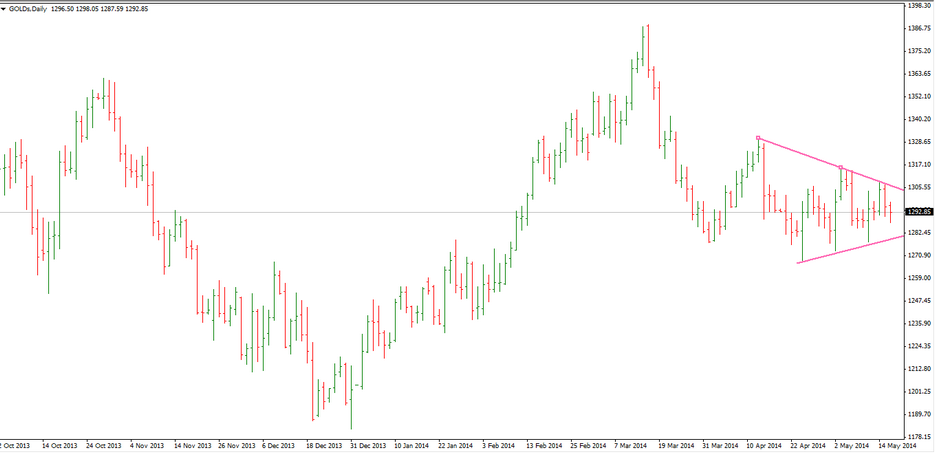 El gráfico del oro está muy interesante para esta semana, creo que puede haber un movimiento importante al que sacarle partido cuando rompa la cuña que he dibujado. Ahora a esperar a la presa. saludos