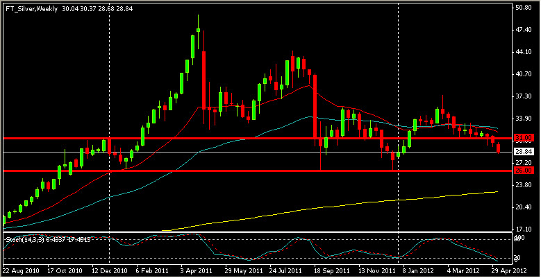 La plata ya ha roto el importante apoyo de $ 31 hace dos semanas y creo que va hasta el mínimo de 18 meses a $ 26. Tanto de los metales preciosos están sobrevendidos y si estás pensando en abrir una posición corta, me gustaría esperar a que una corrección alcista y luego buscar la corrección bajista.