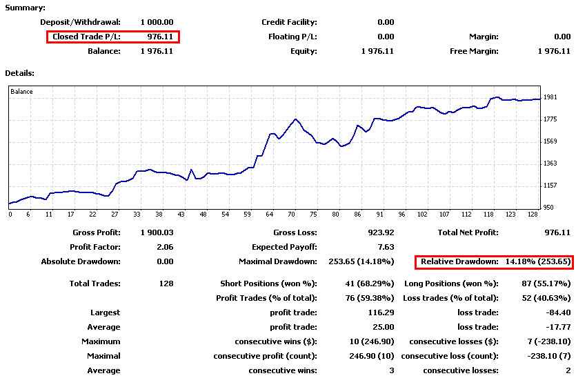 Por la tarde lo aflojé de lote y quité todos los pares del USD, aunque si no lo hubiera hecho me hubiera dado mucho más beneficio: ![]() En realidad SI doblé la cuenta en una semana, porque no lo conecté en la sesión Asia del Lunes y ahora estaría en mas de 1.000€ de beneficio. El DrawDown que da MT4 no es real porque no tiene en cuenta los flotantes negativos, el real es del 49%. Beneficio 97%.