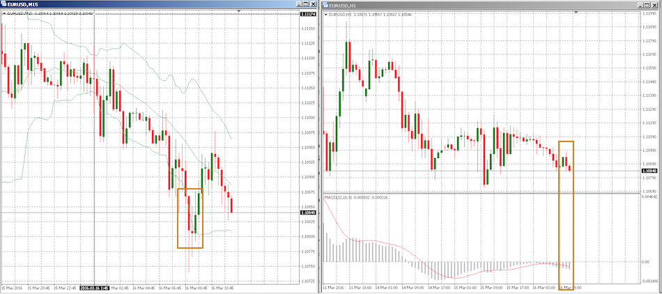Re: PINKI PINKI - estrategia no solo para scalpingAsí mismo he observado en el par EURUSD el siguiente gráfico, prácticamente cumple las condiciones de esta estrategia, pero faltaría estar por encima del MACD en 1H cierto? (uso metatrader y uso dos gráficos distintos si alguien conoce otra solución...)