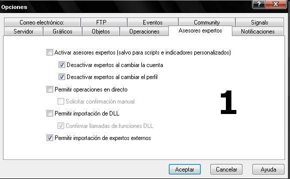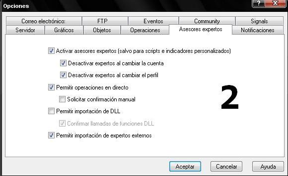 Luego abres metatrader y lo tienes en asesores expertos, lo ejecutas y debes tener la pestaña de comun configurada asi :