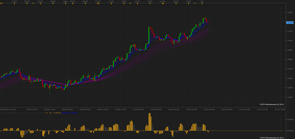He estado toda la mañana probando de hacer lo de la estrategia del 1er post... y los MACD los tengo bien, pero me falta ese indicador de MA de arriba de color verde y rojo. Me gusta bastante lo que hace porque aunque va adelantado, no cambia de color hasta que no lleva clara una tendencia. Como si comparase estando adelantado y retrasado para dar color. Es así o me lo parece?? Sabes si podría encontrar ese mismo indicador pero para Metatrader4? Es que veo que usas la plataforma de FXCM. Muchas gracias por tu ayuda. Un saludo.