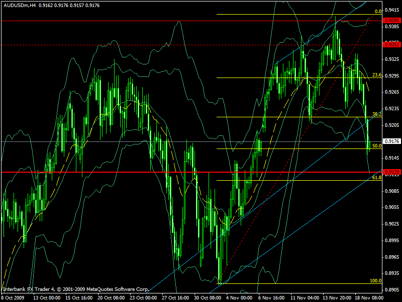 AudUSD Tenemos una linea de soporte en 0,9120, como fue testeado como soporte y resistencia en dias anteriores Tenemos una linea azul, la segunda, de soporte movil, que se junta en la zona con la linea de soporte roja, previamente mencionada También tenemos, ahora el nivel 50 de las fibbo, y de no mostrar en este nivel una linda formación de Price Action, es muy probable que la muestre en el nivel 61, que tambien se junta con los soportes previos mencionados La tendencia general es al alza Asi que yo buscaria un BUY, en las zonas mencionadas Mariano