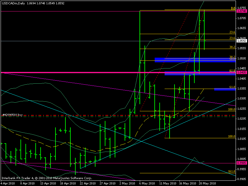 Que haré yo, si da la oportunidad. El precio retrocede hasta 1,0430, donde se encontraría con el nivel 50 o nivel 61 de las fibo, (se conjugan los dos niveles, dependiendo de cual tomamos como soporte, si el nivel 1,0244 o 1,0108)