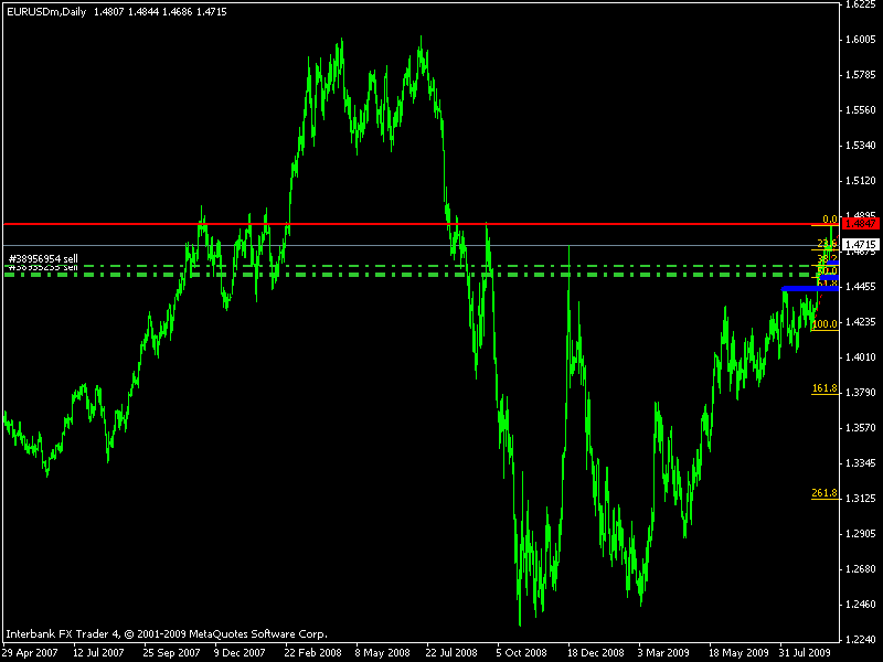 La semana, cerro, mas como una doji, que una pinbar. Igualmente yo creo y "espero" que corrija hasta la ZONA de 1,4500 (puede que llegue hasta 1,4515 y no más) Sería el nivel 50 de esta ultima corrida. Puede que hasta veamos el 1,4450/25. que oooh coincidencia, es el nivel 61 de esta corrida, y una ZONA de previas resistencias. En los gráficos también están lineas de tendencia y posibles rebotes (azules) Mariano