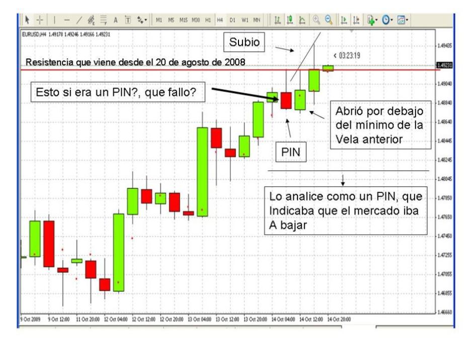 Re: Price ActionHola Mariano..esto es algo que vi como un PIN en 4H en eur/usd pero no funciono nose si cumplía muy bien con las condiciones para ser PIN o que paso,,te dejo el gráfico y te agradezco cualquier información al respecto.