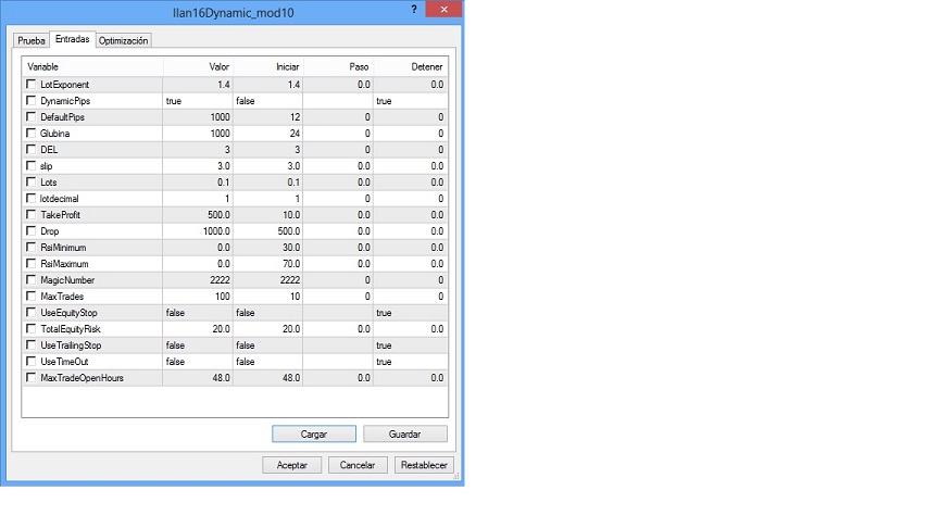Hola MacD! Muchas gracias por tu aporte, valoro muchisimo a gente que ya pasó por estos caminos y tira una soga al que viene detrás. Podrías recomendarnos algo para leer, algún tutorial que sirva para entender un poco más a manejar estos bichos? Por ejemplo yo tengo muchos robots y es como vos decis... no hacen magia y hay que saber configurarlos para la ocasión. En este momento estoy probando uno que se llama ilan dynamic 1.6 (lo puedo compartir) y parece que va bien en demo con una cierta configuración y trabajando con 0.10 lotes... el problema es que no le estoy dando en la tecla para que trabaje con 0.01 que es como lo pondría a prueba en real, cuando toco eso se descuajeringa todo. A la hora de configurar me encuentro con cosas como la toma de ganancias, el riesgo y otros parametros intuitivos pero hay parametros como Drop, Slip, Pips Defoult, DEL, Pips Exponent... etc que me confunden. Si nos pudieras orientar te lo agradecería, Muchas gracias de antemano!
