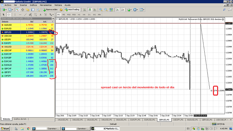 Hombre, ya me parecería de traca, que aún aumentaran más el spread en la apertura, pero conociéndoles cualquier cosa.. yo estoy preparado para cualquier situación que se me plantee, si se me cierra, se me cerró, pero la hostia grande, el hostión, me lo llevé con el velazo del 11 de Julio.