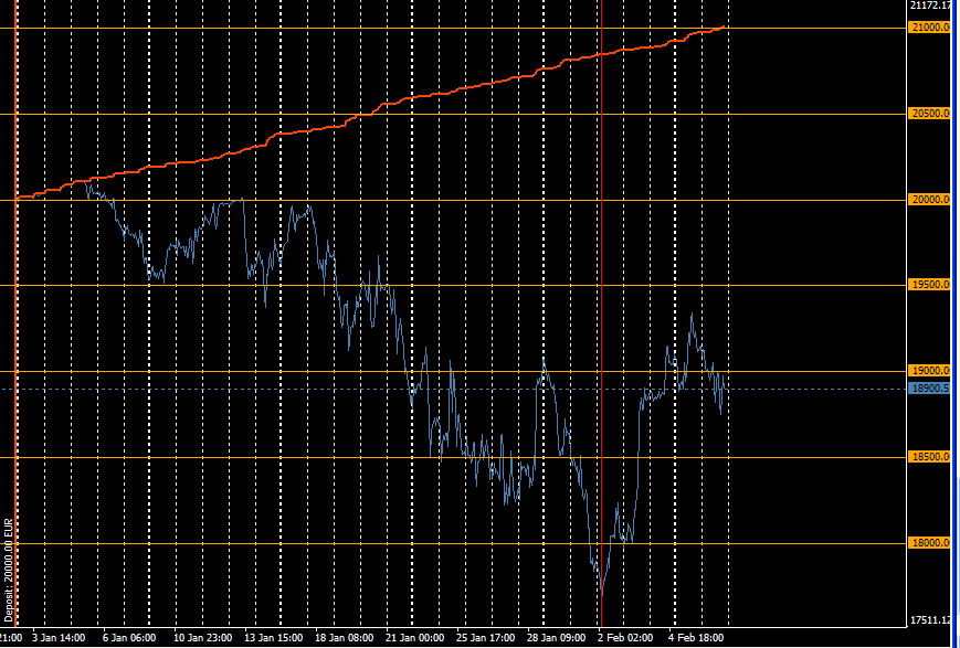 El máximo anual lo tenemos a poco más de 100 pipos de distancia y teniendo en cuenta la poca fuerza con la que está subiendo estos dos últimos días, he decidido apalancar la cuenta hasta 0,7 lotes sell netos, a la espera de que corrija un poco. Si sube por encima de 1,3800 tendremos que volver a girar la posición al lado largo, pero siempre de forma progresiva, que sea el precio el que meta al sistema en un sentido u otro, hay que evitar tomar decisiones en medio del ruido. Hoy la équity ha bajado hasta 18.549 €, un -7,2% del capital inicial. Resulta aburrido comentar la evolución del sistema en días como los de esta semana, pero hay que ser conscientes de que la prueba tiene un objetivo de duración de 1 año completo. Tendremos días relajados, aburridos, cardiacos, eufóricos, etc., de todo se irá viendo poco a poco. Lo importante es mantener al sistema dentro de los parámetros previstos a inicio de año, tanto para bien, como para mal. Más importante que ganar o perder, en esta prueba lo que se pretende es hacerlo bien, tanto si se gana, como si se pierde. El verdadero medio de ganar mucho consiste en no querer nunca ganar demasiado.