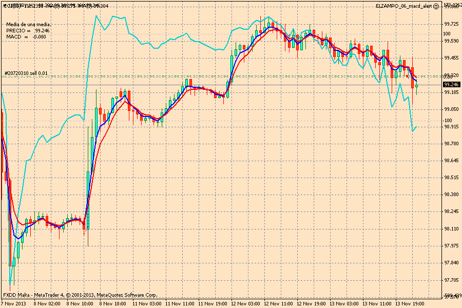 Abierto SELL en 99'30. Si observais el GRF el CCI esta marcando bajada hacia el 98'50 por el momento; lo comento para los que mantienen los S/L de la primera entrada, puedan actuar en consecuéncia si les interesa. Veremos la noche que nos depara TOKIO- Saludos, Enric Ni Toros, ni Osos, lo importante es el Precio
