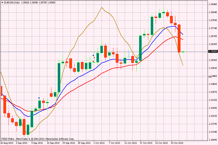 El par EUR/USD que parece tienes olvidado, esta en un impass interesante en GRF Daily. Como puede verse en el grf que adjunto, el cierre de la VELA de hoy, puede ser una gran señal de un DRAW DOWN importante. Si la linea Azul (Ema Exponencial de 10 periodos) cruza la Roja (Ema Smoothed de 10), pienso que asistiremos a una gran bajada. Una forma segura de seguir este par, sin grandes dificultades y grandes beneficios. Saludos, Enric Ni Toros, ni Osos, lo importante es el Precio