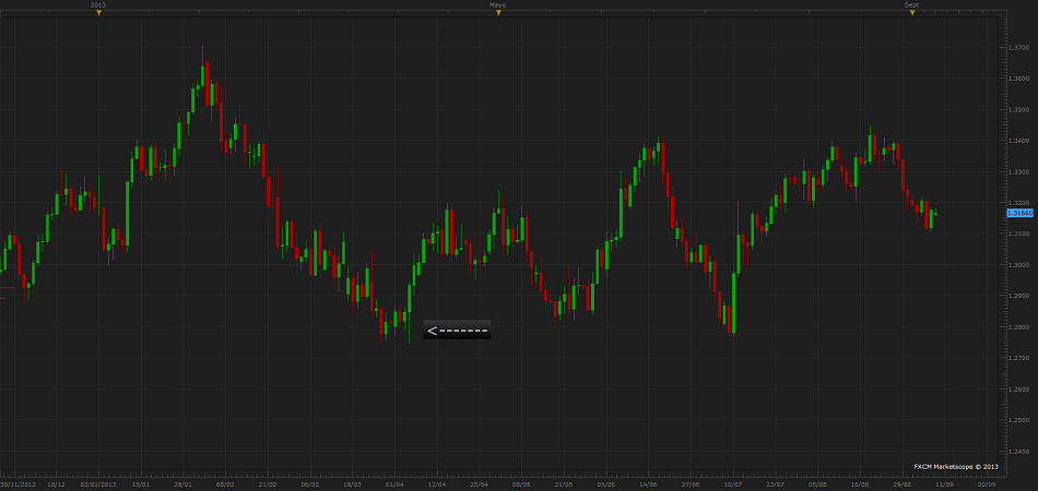 Observen un poco el segundo grafico, miren la línea del precio… habrían vendido? Incluso dos días antes marcaba claramente su salida con una ligera rotura dentro del rango. Recordemos que es un grafico diario en modo lineal, es decir solo nos muestra los cierres diarios, lo único que se moverá será el periodo diario, por que no es una media, es el precio del dia, lo que equivaldría a una media simple de 1 periodo totalmente fiable. Pues bien, en el primero de los graficos lo que muchos operadores del Price action consideraron un buen soporte por tanto momento para comprar, otros… los menos duchos consideraron como el típico descanso para continuar a la baja, lo que les une a los seguidores de tendencia y demás, pero… en el segundo grafico no había que ser muy listo para ver clarísimamente que no había ni siquiera el mismo volumen de precios bajos que en días anteriores cierto? Por eso el precio el ultimo dia en sus momentos mas bajos mostro un V invertida, fuerte señal de compra… esto por que nuestra línea solo nos marca los cierres, por tanto solo cuando hubo volumen de transacciones a esos precios…movimientos consistentes, no aislados. Los comerciantes siguen al volumen, no a los precios…eso es seguir al mercado En los días posteriores el grafico nos marca algún momento a la baja? Por que entonces tener posiciones cortas? Por que un MACD nos marco una divergencia en graficos de 1 minuto? Por que somos los megatraders que vamos en contra del mercado? Por una vela despistada que rompió alguna línea de tendencia en algún tipo de grafico? Pagamos 1,000 o 2,000 euros para eso? Nada de eso es un motivo solido para entrar al mercado, y los comerciantes siempre tienen motivos solidos para entrar al mercado y salen cuando estos mismos motivos desaparecen de la escena. Los comerciantes inexpertos, incluso cualquier comprador ocasional inexperto que va a un mercado, compra en el primer local que encuentra, no espera … se apresura. En cambio uno con experiencia recorre todos los locales o parte de ellos hasta tener un sentimiento de mercado… si hay quien ofrece mas caro, pero son los menos… siente donde esta el balance, el equilibrio, y sobre esto piensa como puede sacar ventaja… es astuto, toma su tiempo para pensar y actua con la rapidez y la decisión de un león, se imaginan un león poco paciente y despistado? El precio real esta en el volumen Podemos encontrarnos con todo tipo de precios en un mercado, en este caso esas velas despistadas, significan que alguien compro determinada divisa para pagar una factura, vencimientos, L/C en cualquier parte del mundo, y un buen grupo de especuladores despistados que no piensan como comerciantes, pero nosotros somos comerciantes de divisas, especuladores… La RAE contempla varios significados para la palabra especular; 1. Registrar, mirar con atención una cosa para reconocerla y examinarla, meditar, reflexionar con hondura, teorizar. 2. Perderse en sutilezas o hipótesis sin base real. Cual creen ustedes que les sea mas útil en su oficio de operar con divisas? Después de todo la palabra tiene su origen en observar… Pereza? Si alguien les comento o ustedes creen que el operar en forex es fácil, les mintió… es como todo, puede ser fácil siempre que se tengan aptitudes, preparación y sobre todo dedicación… Si lo que quieren es triunfar en grande en este mercado necesitan como cualquier actividad en la vida… compromiso.