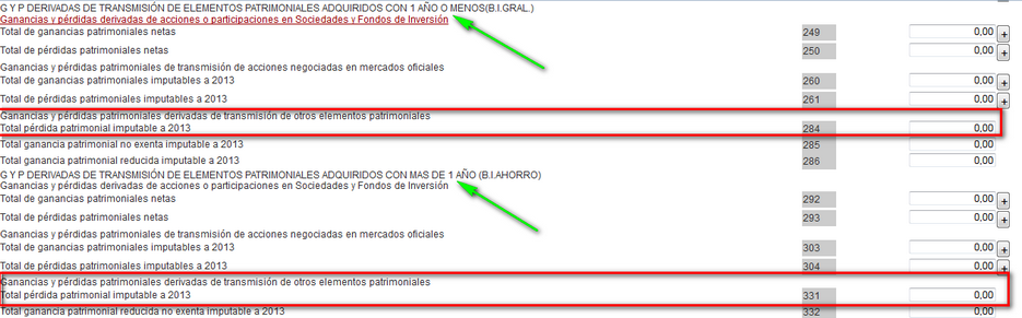 Wizard, me he descargado el programa padre 2013 y deduzco que es en la pag 9 ( IV ), " Ganancias y perdidas patrimoniales derivadas de la transmisión de elementos...", casilla 264 ( Clave 5 ), casilla 267 y siguientes, confirmarme si estoy en lo correcto?? Gracias, Alson