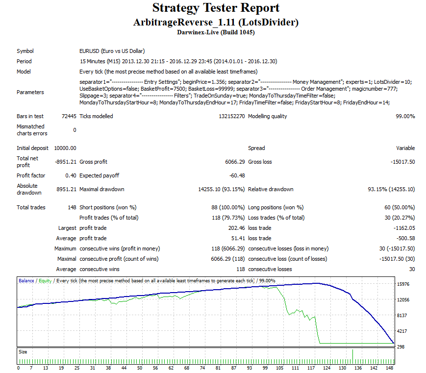 Re: EA Rentable GratisBacktest del ArbitrageReverse (LotsDivider), EURUSD 15M, entre 2014 y 2016. No aguanta ni el primer asalto