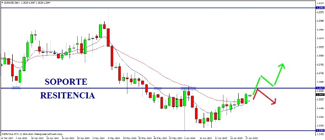 Les paso el analisis para los dias que vienen en algunos de los pares principales de forex: EUR/USD ![]() Comentario: El par sigue la tendencia bajista de la cual habiamos hablado hace un par de semanas. Idealmente, deberiamos de buscar que el precio suba al nivel de resistencia de 1.35, y de ahi buscar una senal de venta del par, y asi entrar en una operacion en linea con la tendencia bajista. USD/CHF ![]() Comentario: El USD/CHF ha roto la resistencia de 0.9536 (convirtiendose este nivel ahora en soporte). La tendencia positiva se ve fortalecia con el cruce de los EMA's de 8 y 21 dias, reforzando asi la idea de ir con una posicion larga. Deberiamos de buscar de comprar el par en mencion alrededor de la linea de soporte (con una clara senal de compra). Hasta eso no nos queda mas que esperar y ver como se desarrolla los acontecimientos en los proximos dias. Saludos El Trader FX - Operamos solo con Price action http://www.eltraderfx.com - 100% Price Action!