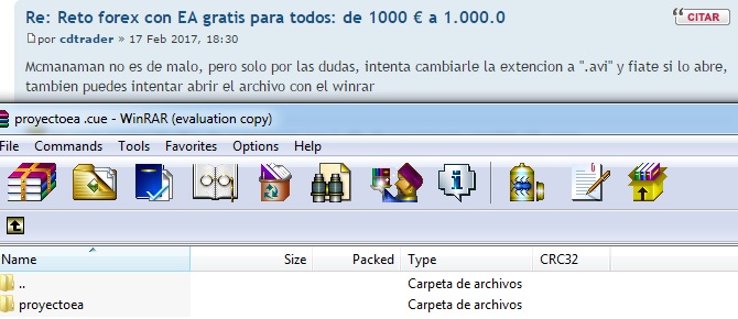 Re: Reto forex con EA gratis para todos: de 1000 € a 1.000.0Muchas Gracias CDTrader, se pudo abrir con winrar, y ya ves lo que hay dentro, más archivos!!! nos estábamos volviendo locos ayer y que simple era la solución. Seguiremos informando.
