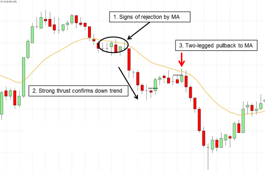 Para los que estén interesados en la acción del precio aquí les pongo un patrón que puede ser interesante. Muchos traders de la acción del precio afirman que los retrocesos de dos patas son uno de los patrones más fiables. La variante que voy a explicar es la de Al Brooks. En sus libros, Al Brooks identifica los retrocesos de dos patas a la EMA (de 20 periodos) como uno de los mejores patrones de continuación cuando hay una fuerte tendencia. Antes de empezar, voy a explicar básicamente cómo contar patas. Cualquier barra que supera el máximo de la barra anterior inicia una nueva pata alcista. Cualquier barra que sobrepasa el mínimo de la barra anterior inicia una nueva pata bajista. REGLAS DE TRADING Compra: 1. Fuerte tendencia alcista 2. Retroceso de dos patas bajistas hasta la EMA 20 3. Entrar un PIP por encima de la barra que testeó la EMA 20. Venta: 1. Fuerte tendencia bajista 2. Retroceso de dos patas alcistas hasta la EMA 20. 3. Entrar un pip por debajo de la barra que puso a prueba la EMA 20. EJEMPLO 1. El precio rompe por debajo de la EMA y trata de cruzarla de nuevo al alza pero es rechazado claramente. 2. El fuerte empuje bajista confirma la tendencia bajista que era lo que necesitábamos antes de buscar operaciones de continuación de la tendencia. 3. Las dos líneas de puntitos indican el inicio de cada pata de retroceso. Las largas colas superiores a medida que el precio se acercaba a la EMA indicaba presión vendedora. Entramos un pip por debajo de la barra que pone a prueba la EMA y que finaliza el segundo segmento de retroceso. EXPLICACIÓN DE LA ENTRADA A2 (RETRACCIONES DE 2 PATAS A LA EMA) Una entrada A2 es una “especie” de movimiento de corrección ABC. Donde A y C son los los dos segmentos de retracción. Las entradas de continuación funcionan porque la tendencia atrapa a traders que operan contra tendencia. Los retrocesos de dos segmentos son atractivos para ellos, entran contra tendencia pensando que la tendencia ha finalizado, pero funciona como una trampa para ellos y quedan atrapados en una operación perdedora donde sus stops servirán de “combustible” para nuestra entrada a favor de la tendencia. Por lo tanto, en un mercado con una tendencia clara, los retrocesos de dos patas a la EMA son un patrón sencillo y de alta probabilidad. Saludos!