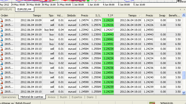 Re: Revisión de la MartingalaSeñores, la PRUEBA TERMINO. Motivo, La plataforma de ALPARI UK sobre las 5 de la tarde se VOLVIO LOCA. Todo comenzo con un clasico "no conexión", pero como estoy acostumbrado a esta incidéncia, no le preste mucha atención, pero cuando recupero la conexión, fue un expectaculo. El Balance estaba en 653 $, La ventana de Ordenes, abrió en blanco, salía como que abria una orden, pero al momento la cerraba y el Balance aumentaba en 3'50 $ y asi hasta más de 30 veces????????. Resultado el Balance se fue a 1039 $ sin mas.