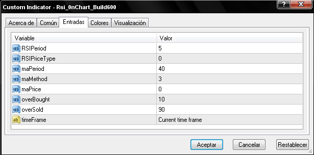 El indicador en sí, funciona bien, pero no se muestra igual que en la ventana separada, y en consecuencia, no sería útil por ejemplo para ver las divergencias. Te adjunto una imagen donde se ve cómo en la ventana separada el RSI(14) hace máximos menores y en el mismo punto el RSI on Chart(14) hace máximos mayores. A eso es a lo que me refería con que no pinta igual. Espero haberme explicado. Te estás tomando muchas molestias en ayudarme con esto y realmente te lo agradezco. ![]() Muchas gracias y un saludo