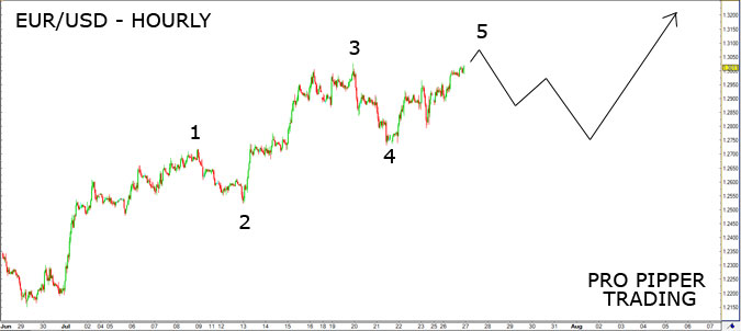 Re: Rumor IntensoPucha que los malditos Stops Hunts en el EurUsd cayo hasta 1.2980... tenia una compra en el 1.3012 que tenia un buen soporte, el stop hunt barrio mi stoploss de 20 pips, creo que debio haber barrido con todo los stops que tenian stop ubicado cerca de 1.3000. Ocurrio tal como aparece en el grafico con las ondas de elliot, habra otro zigzag de subidas y bajadas que vendra otra gran bajada, para luego trepar por encima de los 1.3100.