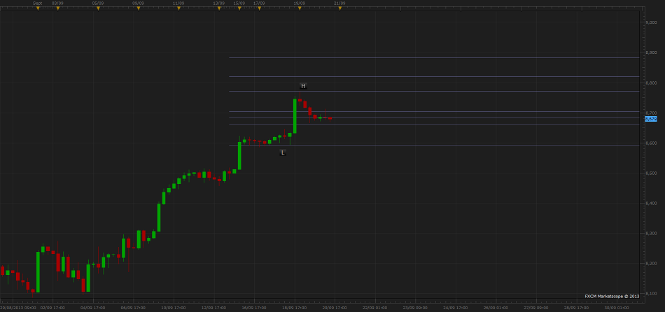 Seguro que habrá gap, no te quede duda y pienso que se moverá entre 70 y 100 puntos, pero que dirección tomará???, desde mi punto de vista (y si alguien toma posiciones con lo que digo, bajo su responsabilidad), el dax lleva tiempo dando síntomas de fatiga, se está manteniendo en máximos artificialmente por los estímulos externos (el amigo bernanke, siria) e interno (las elecciones), una vez pasen las elecciones, esto se desmorona. Un saludo y buen fin de semana