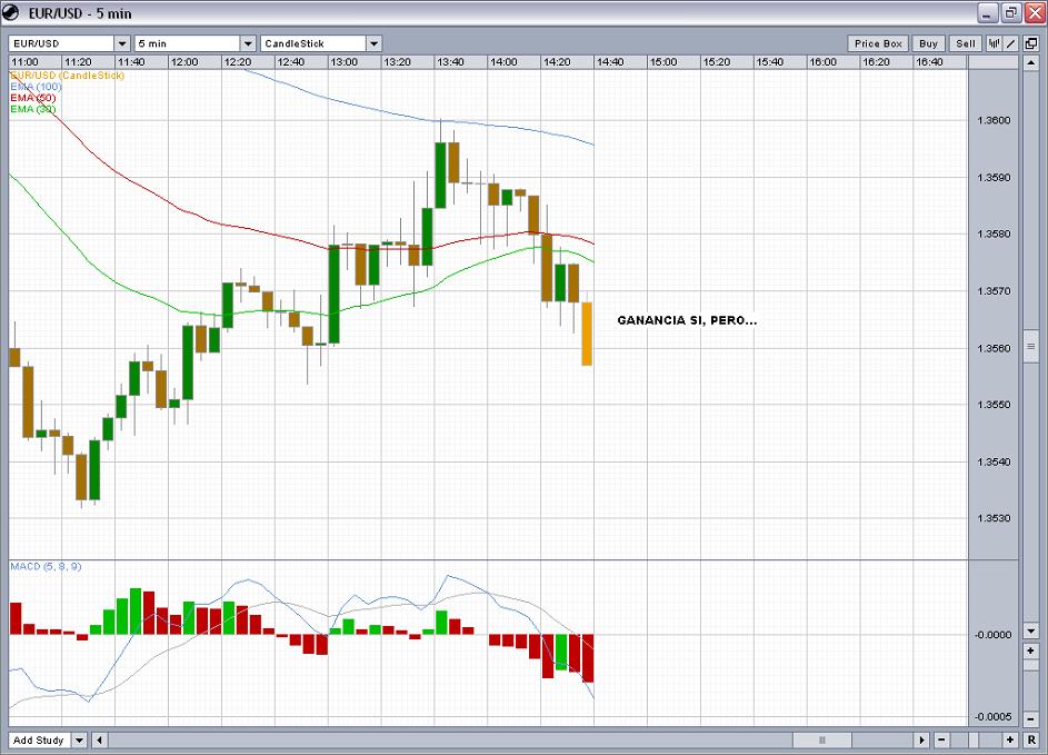 Con esto no quiero decir que estas posibles entradas no sean válidas, simplemente se salen del ámbito sobre el cual he venido estudiando la estrategia, por lo que no puedo dar ningún valor a esa señal. Siendo así pues la dejo pasar... Si a alguien le parece interesante estudiar este tipo de señales para determinar si es rentable o no operarlas pues adelante y bienvenidos serán sus conclusiones al respecto.