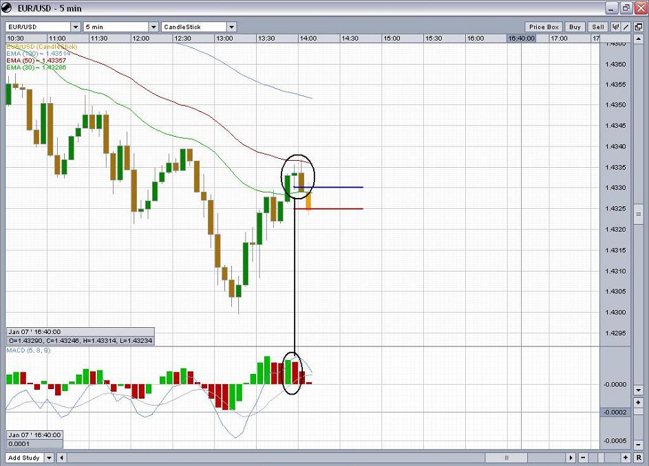 Hola GanandoPips; Tengo un par de dudas sobre el sistema. Creo entender, que el patrón no se confirma hasta que cierra la barra de 5 minutos (tanto el precio como el Macd) ¿no es así?. Por lo tanto, la barra ¿debe ser green(compra) red (venta) ?. Otra cuestión: si tenemos ya el patrón confirmado y el precio por ejemplo cierra en 1.4527, la orden sería 1.4525 (por debajo del precio, por lo tanto debería retroceder) o 1.4530 (siguiente nivel) ? Gracias y un saludo.