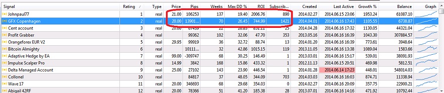 Por que no revisas las estadísticas en la pestaña señales de mt4 tenemos que uno de ellos tiene 890 suscriptoes a 21 dólares esto es 18690 dólares al mes, otro tiene 1421 suscriptores a 20 dólares ose 28420 dólares (adjunto imagen), como tu dices "los proveedores de señales no sacan gran beneficio vendiéndotelas"... Claro 28 mil dólares mensuales adicionales a lo que haces todos los dias no significa nada.