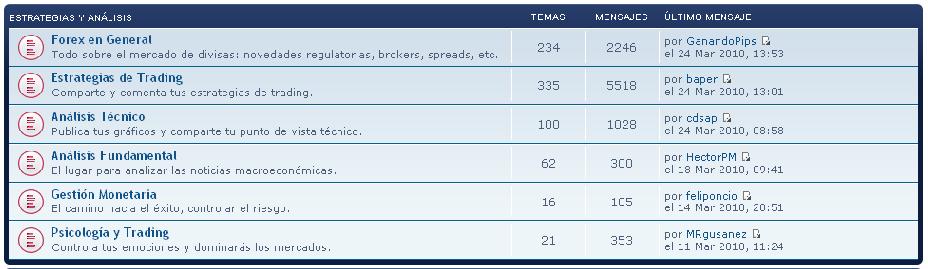 Del total de temas abiertos entre estas 3 categorias sólo el 5,6% son sobre Psicología y Trading y el 4,3% son sobre gestión Monetaria... el restante 90,1% tratan sobre Estrategias de Trading. En cuanto a la cantidad de mensajes vemos resultados similares, el 92,3% son sobre Estrategias de Trading...