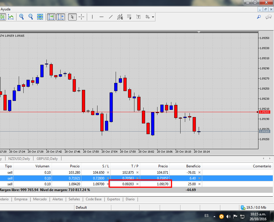 Re: Take profit no funcionoHola Alirio, tienes mal puesto el TP, observa que pone 0.09203 en lugar de 1.09203