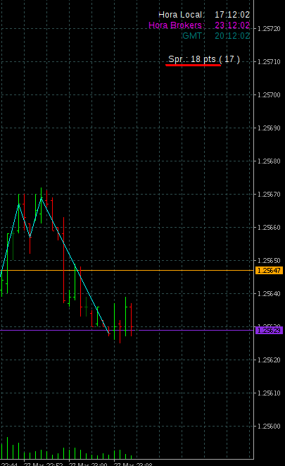 Soy nueva en esto de Forex, estoy haciendo experiencia con Metatrader5 DEMO. Resulta que instale un indicador de spread para que este visible y veo que en el mejor de los caso es un valor de dos dígitos enteros. Mas resulta que veo, en algunas paginas de brokers, spreads mucho mucho mas bajos. Hoy 27/03/17 saque dos instantáneas, la primera según Mt5 y la segunda según : https://es.investing.com/brokers/compar ... ds-gbp-usd Si pudieran explicar a que se debe esta gran diferencia, estaría muy agradecida. Saludos