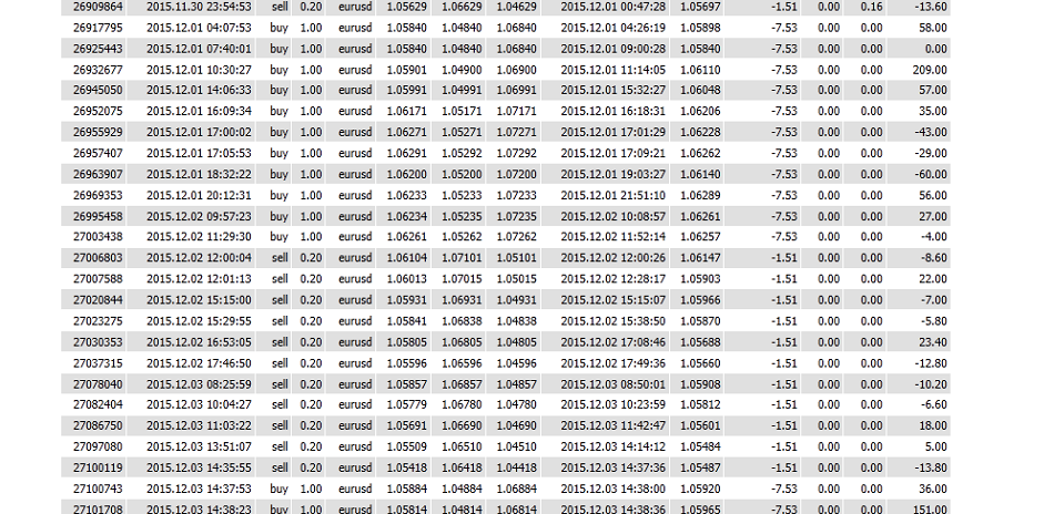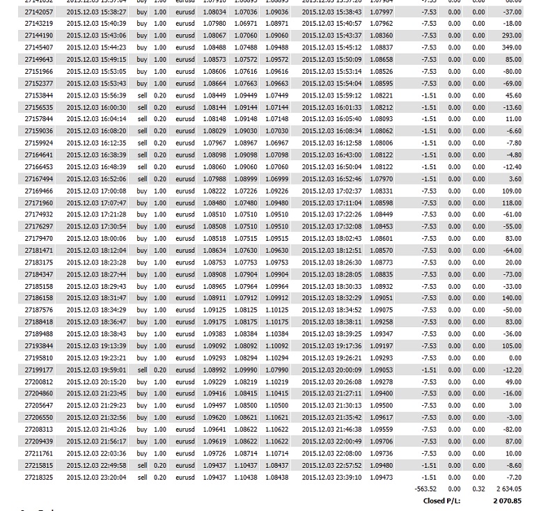 un gusto tenerte en el foro, bienvenido has probado tu robot en demos o cuentas pequeñas? hacer backtest es como torear de salon, el toro real esta alla afuera... esta bien para comprobar la ejecucion y algun detalle mas, pero al toro... o la becerra para empezar Mas importante que un backtest y tan importante como el sistema/MM y demas, es el broker, no solo el spread y aun mas importante que el broker es su proveedor de liquidez... en caso que quieras que el robot tenga un tiempo de vigencia decente... esa es la verdadera forma de testear una ejecucion real (y al broker...) y que como todo tiene un limite, un broker te puede funcionar bien hasta que te deja de funcionar bien, incluso a veces muy a su pesar... que luego la gente no sabe por que su sistema dejo de funcionar xD yo de backtests se muy poco, solo los uso para comprobar que el codigo hace lo que quiero, de modo que casi siempre detengo el backtest sobre todo para que el ventilador no empiece a hacer su escandalo... a partir de ahi en mi opinion es perdida de tiempo, por querer ganarlo se pierde... el tiempo... Te comento esto por que segun se mira, tu robot puede ser bueno y no por los resultados, no es en eso en lo que me he fijado. De modo que seria genial (entiendo que no lo has hecho segun tu planteamiento en el hilo) que te animaras y lo probaras en forward test para empezar, siempre tenlo en demo y observalo, metelo a todos los concursos que encuentres, vuelvelo a la demo... te muesto un par de fotos de mercado de un robot que hice. El mio tiene un sistema de grid no de 5, sino de 3, por eso pienso que te puede ser interesante sobre todo para que te animes a ir tirando palante sin perder tiempo El sistema un dia lo quise explicar por ahi en otro foro... pero recuerdo que apenas estaba publicando el primer post, y a falta de dos por que un grid se lleva un poco mas para explicar... ya tenia a un notas insultandome en el recien creado hilo xD pero es un grid tecnico le llamo yo, por que se refiere los niveles de entrada, no un tipico grid de entrar a la bartola pa aqui y pa'lla y el MM es un algoritmo muy simple y efectivo; el Draw Down esta en menos del 4%, es virtualmente imposible que rebase ese DD el sistema entre otros lo probe en un par de concursos de nordfx, spreads altos... fuera pero afine la entrada, luego en demo demo y mas demos, en cuentas reales de nanolotes, ha estado en concursos con Armada, Instaforex, incluyendo el de fxdd (conocido de aqui)lo que me sirvio para ajustar el MM, un poco mas de demo de seguro me tomo muchisimo tiempo por que soy operador manual aunque me gusta hacer mis pininos con robots, pero este sistema ha estado en pruebas casi dos años (con mis meses de descanso o que se me olvida). Seguramente dedicado al 100% le habria tomado confianza en un par de meses. En cuanto a los brokers ya se que tipo de robot se puede comer un broker u otro, en eso no pierdo tiempo. este lleva ya por fin 5 dias en accion con Pepperstone y mira como se porto hoy con toda la que cayo encima si observas bien, deslices a favor... a veces en contra... buen broker el Pepperstone ese no es el robot perfecto, tiene muchos defectos dice mi madre... y demasiadas perdidas... dice mi padre pero es real... saludos