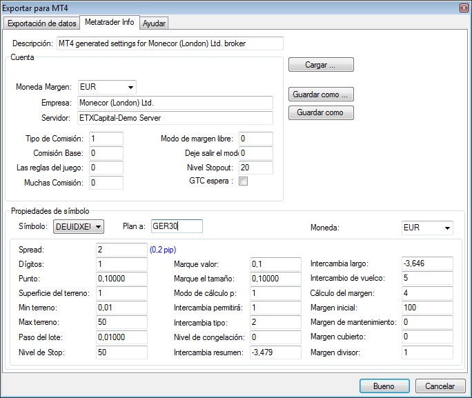 La clave de todo esta en la pantalla de exportacion y sus parametros, se ha de ilar muy fino para que todo vaya bien, a parte de lo que se comenta de campos importantes a rellenar, por lo que sea si algun otro dato no cuadra bien con lo que MT4 espera pasara lo antes descrito.