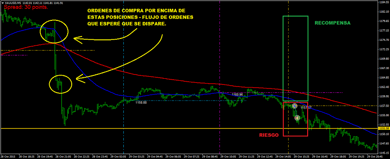 No hay problema Eduardopo, voy a ayudar en la medida que pueda. Trataré de comentar lo que estubo en mi cabeza en ese momento. FXWizard, a mi me pasó algo parecido. Tal como comenté anteriormente seguí mi plan pero como bien dices, el mercado no se comportó consistentemente como se esperaba. El mercado venía desde el martes reduciendo su exposición en el USD debido principalmente a las desalentadores noticias en casi todos sus indicadores económicos. Casi nadie esperaba (y creo que aún ahora tampoco, a pesar de las palabrerías de la FED) una suba de tasas en diciembre. Cuando el mercado acumula durante mucho tiempo muchas expectativas (hace meses que el USD se viene fortaleciendo debido a la inminente suba de tasa de interés) a medida que se acerca el momento tan esperado, cualquier indicio por más insignificante que sea, decanta en gran volatilidad en los mercados como hemos visto recientemente en el EUR y otros pares. Por parte del EUR se espera nada más que caida libre debido a la reciente comunicación del ECB de nuevos paquetes de estímulo. Si combinamos ambos pares EUR/USD con marcadas divergencias en sus respectivas políticas monetarias, sólo queda una dirección para el EUR/USD : => BIEN ABAJO Y MUY LEJOS ! Con todo esto en mente, el plan fue simple: si Advance GDP (mide la inflación) daba un suspiro para mejor, la venta del EUR/USD la hubiese podído hacer mi sobrina de 1 año Si el resultado era negativo entonces, aunque sea un poco como fue en este caso, reforzaría la idea de que definitivamente no habría suba de tasa en diciembre (muchos estaban esperando esta noticia con mucho interés), por lo que simplemente compraría ORO (es decir, vendo USD). La idea de comprar XAU/USD y no EUR/USD es debido que el EUR tiene sentimiento muy negativo, en cambio el ORO es uno de los activos que se usa cuando hay incertidumbre con el USD (también se puede vender USD/CHF). Adjunto unos gráficos con explicaciones de lo que hice y por qué en ambos pares. La sorpresa vino a la baja: 1.5% Vs 1.6% esperado. Nada tan malo debido a que no cambia la perspectiva de crecimiento en el largo plazo. Aparte tuvimos una revisión a 3.9% Vs 2.3% anterior lo cual fue bueno. Entonces segui mi plan con el ORO. Como se puede ver, el ORO había testeado un buen nivel de soporte y hubiese sido una linda corrida a la alza si se disparaban los stop losses arriba de las zonas indicadas, cosa que no ocurrió y se cortó la posición. Posteriormente el mercado giró en favor del USD (seguramente se basó en la buena revisión), por lo que intenté un swing a la baja en el EUR/USD. Como esperaba un movimiento de 140 pips aprox, y dado el sentimiento actual, intenté escalar en varias posiciones (scaling into o adding to position por sus siglas en inglés) con varias posiciones "FULL" siempre cubriendo el rieso de la anterior. Como se aprecia, lamentablemente se cortaron con una ganancia marginal. Pero de haber ido a mi favor, me hubiera dado un Risk Reward Ratio de aprox 12 a 1 en mis posiciones combinadas ! ( a propósito, ahora mismo estamos en una buena posición para iniciar una jugada de este tipo Espero me haya explicado bien, no soy muy bueno en eso Si hay más interés seguiré posteando cosas por el estilo y explicando como operar el flujo de órdenes Exitos ! " --- Yo tradeo lo que no se ve en un gráfico --- "